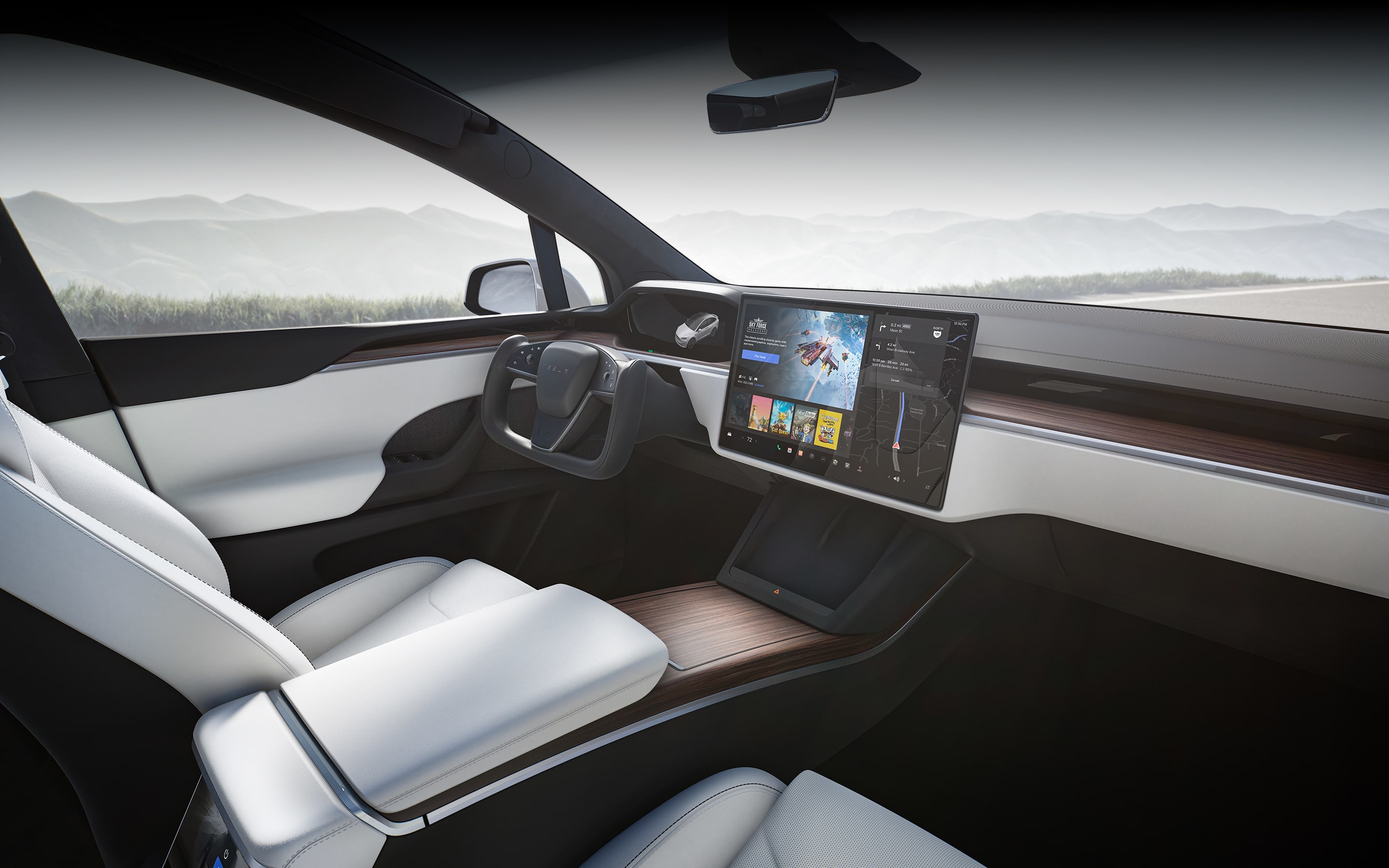 테슬라 모델X의 외관 디자인은 현대적인 우아함을 드러냅니다. 매끄러운 라인과 프리미엄 재질이 조화를 이루어 강력한 인상을 줍니다.
