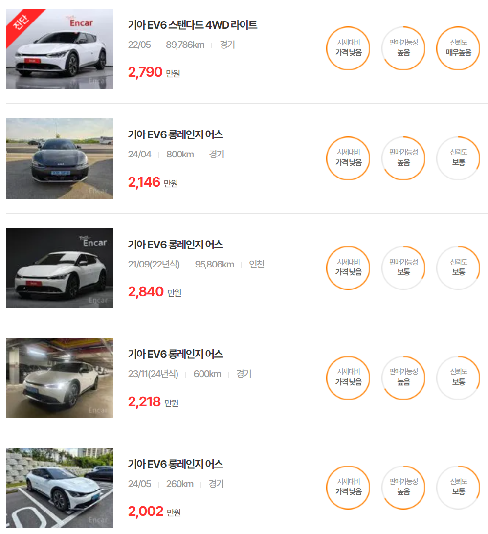기아 EV6 중고차 가격 시세표 | 25년 6월 기준