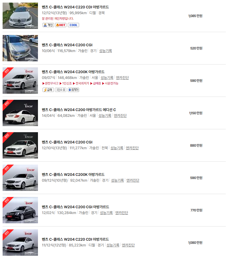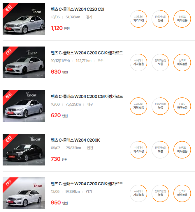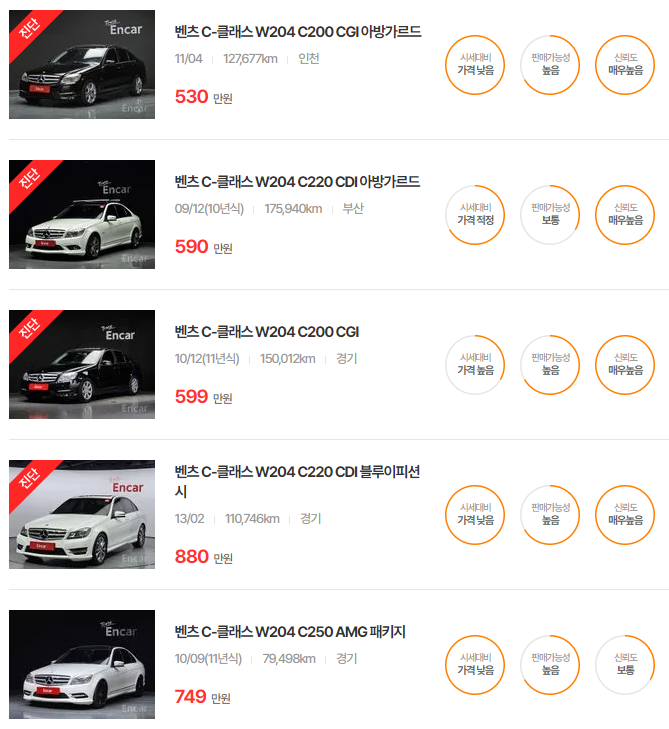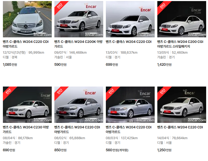 W204는 비교적 초기 세대의 모델로, 경제적이지만 향후 주행거리 기준으로 추가적인 유지보수가 필요할 수 있습니다. 옵션, 주행거리, 연비 등을 종합적으로 고려하는 것이 좋습니다.