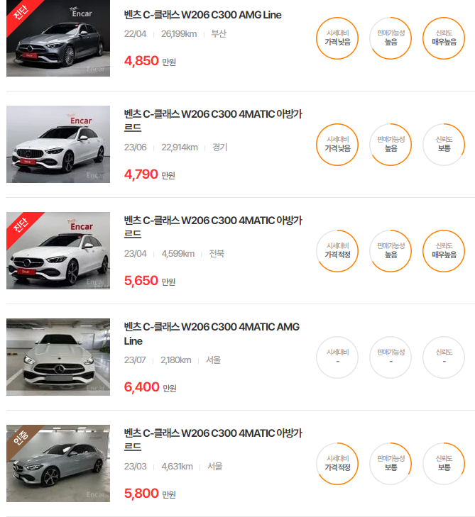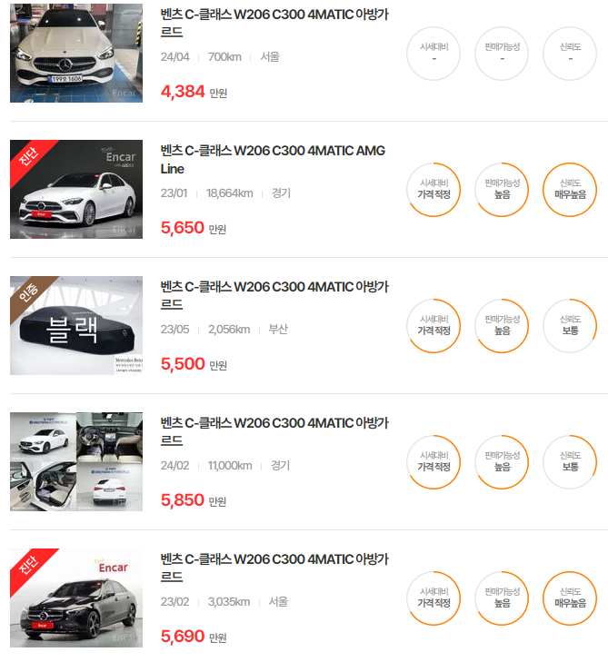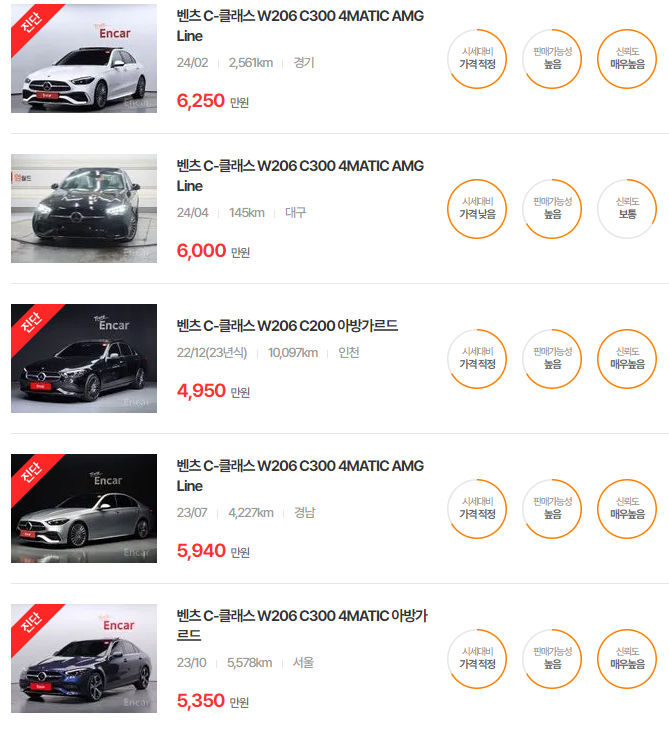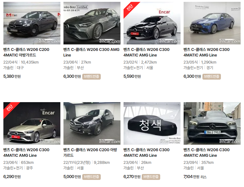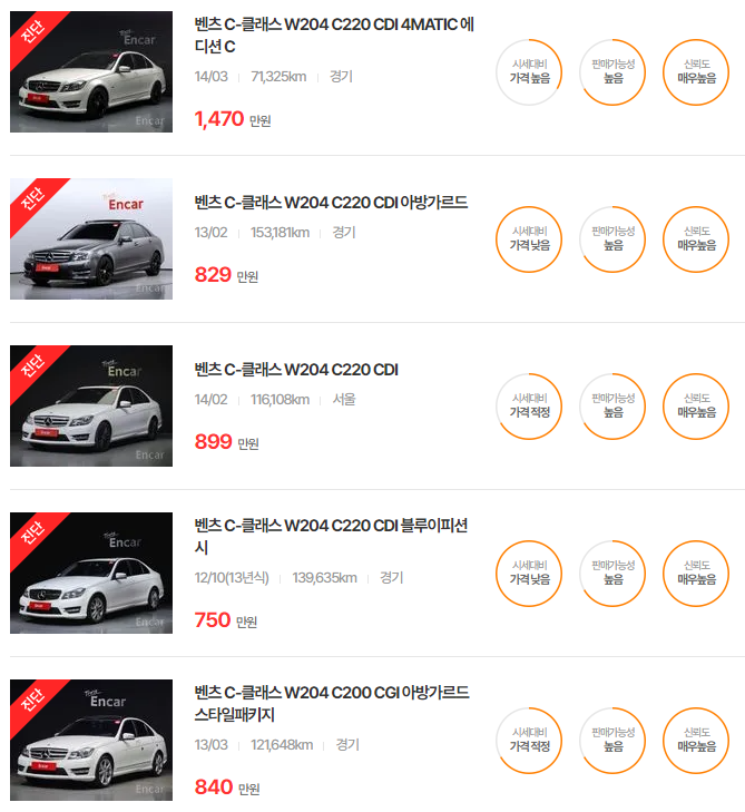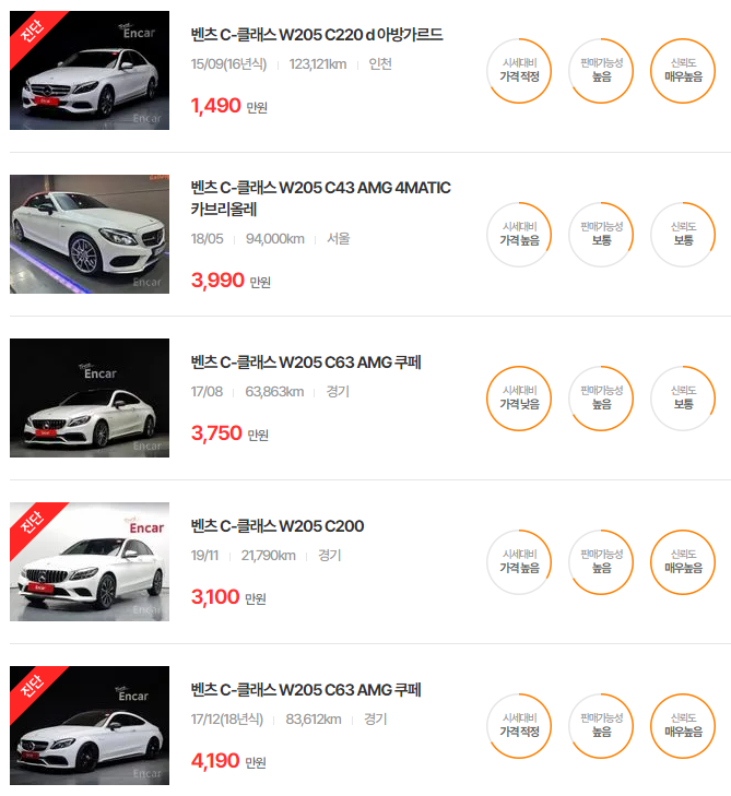 벤츠 C클래스 중고차 가격