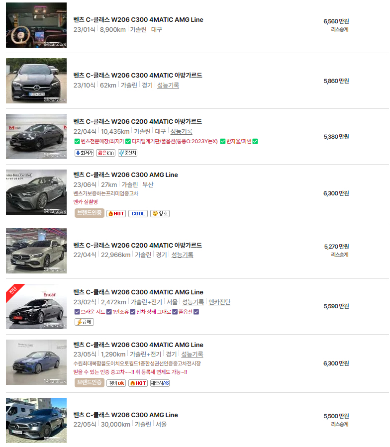 W206 모델은 최신 디자인과 첨단 기술이 접목된 차량으로, 트림에 따라 주행거리와 옵션에 따라 가격 차이가 발생할 수 있습니다. 연식별 옵션과 유지비용까지 함께 비교해보면 더 합리적인 선택이 가능합니다.