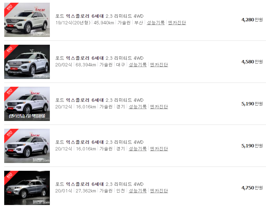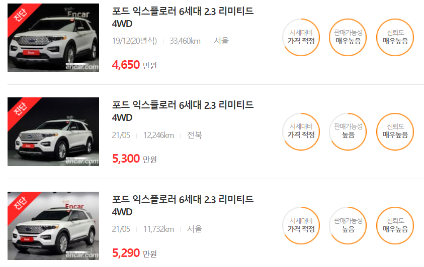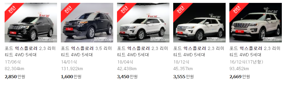 이 글이 포드 익스플로러 중고차를 고려하시는 데 도움이 되었길 바랍니다. 포드 익스플로러의 중고차 가격, 연식별 시세 그리고 차량 유지비 요소를 고려하여 합리적인 선택을 하시길 바랍니다.