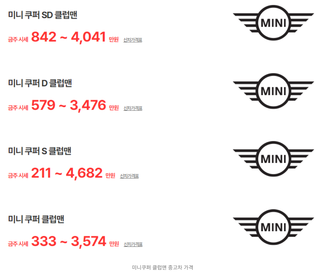 쿠퍼 클럽맨(09년~23년식) 중고차 가격