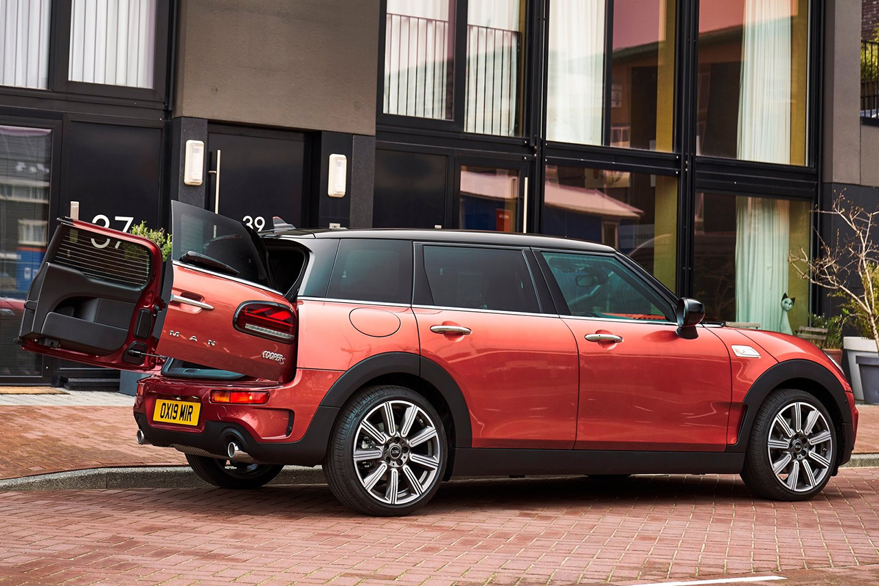 미니 클럽맨의 외관은 독특하면서도 매력적인 디자인을 자랑합니다. 후방에는 쌍문 형태의 트렁크 도어가 있어 적재와 하차가 편리합니다.