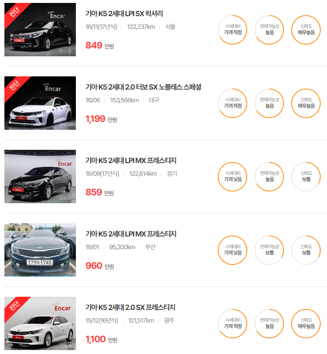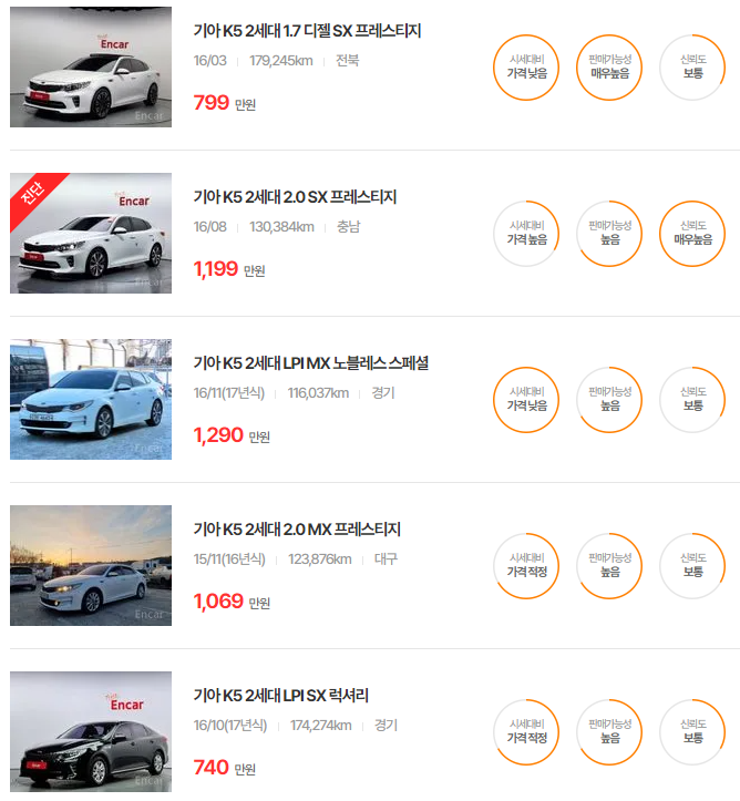 - 엔카: 다양한 브랜드와 모델의 매물이 많아 선택의 폭이 넓습니다.