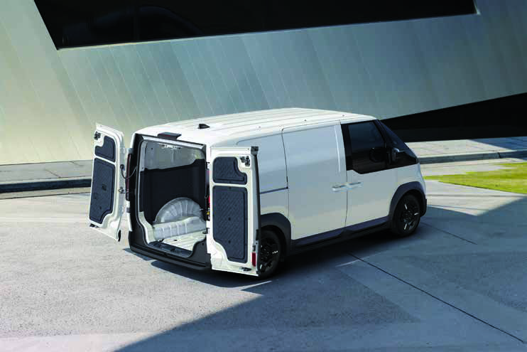 짧은 본닛과 박스형 구조가 조화를 이루며, 슬라이딩 도어 등 실용적 설계가 돋보입니다.