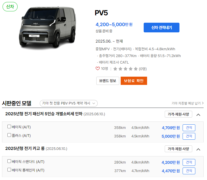 - 모델명: 기아 PV5 (Passenger Vehicle 5)