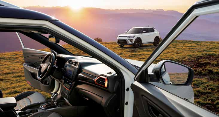 티볼리 에어는 강렬한 인상을 주는 외관 디자인으로, 최신 유행을 반영한 스포티한 그릴과 LED 헤드램프가 특징입니다. 이는 차량이 도로에서 시각적으로도 눈에 띄게 합니다.