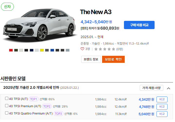 | 2025 아우디 A8l 가격표 | 55 tfsi 콰트로 (0) | 2025.06.01 |